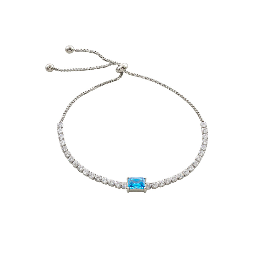 Βραχιόλι με πολλά λαμπερά λευκά κρύσταλλα cz και ένα μεγαλύτερο ορθογώνιο κρύσταλλο στο κέντρο, από τη νέα εντυπωσιακή συλλογή Festive της Loisir.