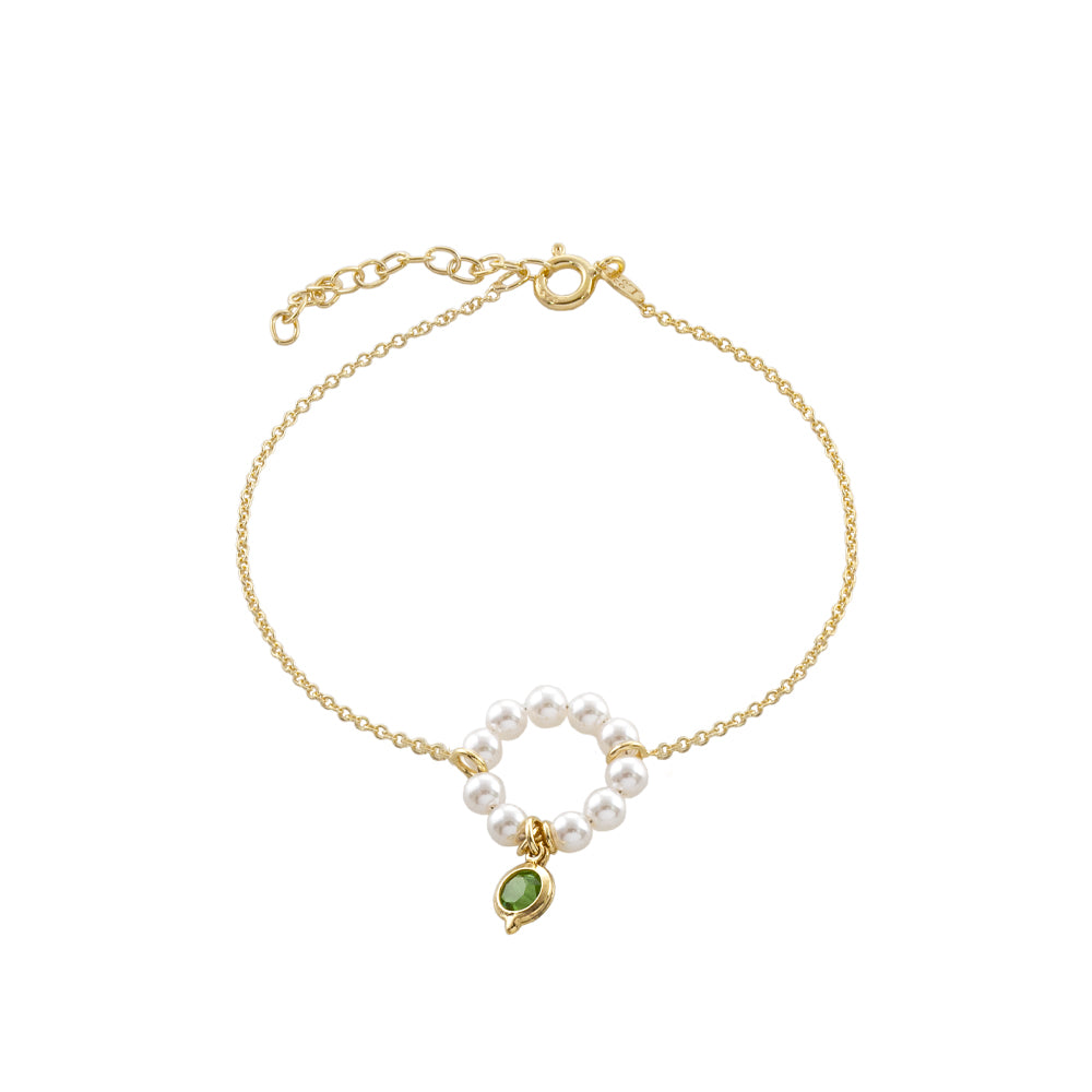 Υλικό: ασήμι 925 με λευκές πέρλες και πράσινο cz