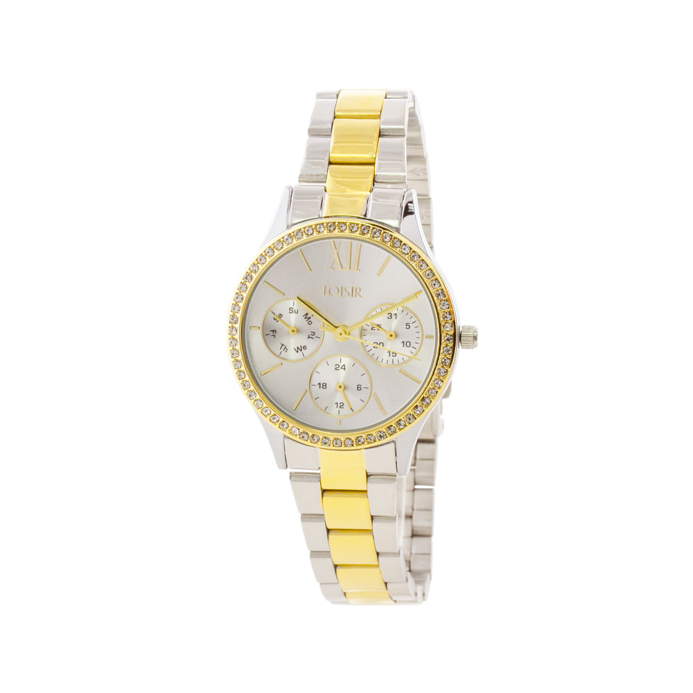 Ένα κομψό ρολόι που διατίθεται διαφορετικές αποχρώσεις στην επιμετάλλωση του ατσάλινου μπρασελέ του, και θα σας κερδίσει με το ιδιαίτερο design και τις υπέροχες λεπτομέρειες από κρύσταλλα στο καντράν του.