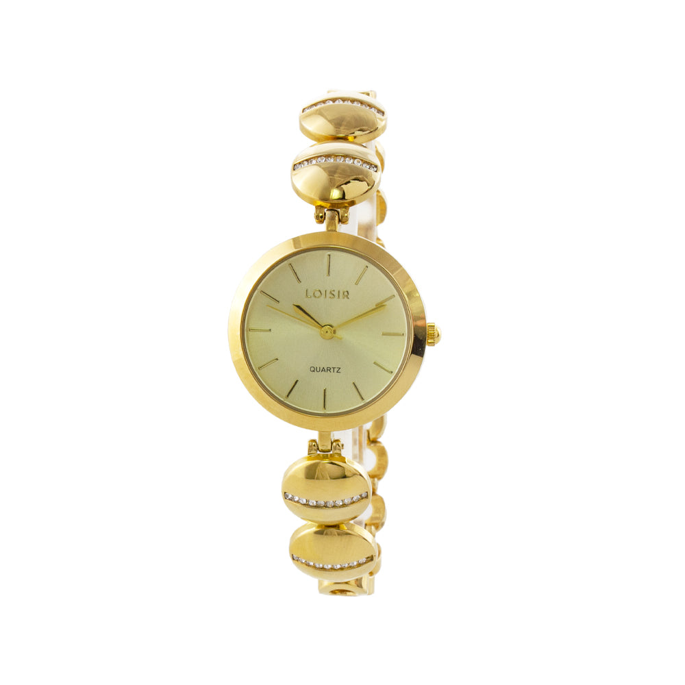 Το ιδιαίτερο μπρασελέ με τα στρογγυλά στοιχεία και τα κρύσταλλα δίνει λάμψη και μοναδικό χαρακτήρα, ενώ το minimal καντράν ολοκληρώνει το μοναδικό του στιλ.